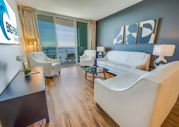 The beachfront Oceanfront 3Br Condo W Hot Tub & Balcony Myrtle Beach is situated 16 minutes' walk from Mt Atlanticus and offers a private swimming pool. Staying in the apartment, nestled in the immediate vicinity of the Second Avenue Pier, guests can relax on a patio.